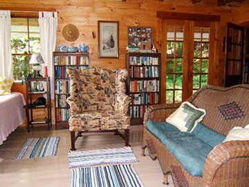 Accommodations include three bedrooms upstairs, single bed down, full bath, full kitchen with pantry, living room and dining area looking out over the lake, private beach, picnic table beach chairs and umbrellas, gas grill, fishing tackle and Wi-Fi. And there is an extensive library in the cottage.